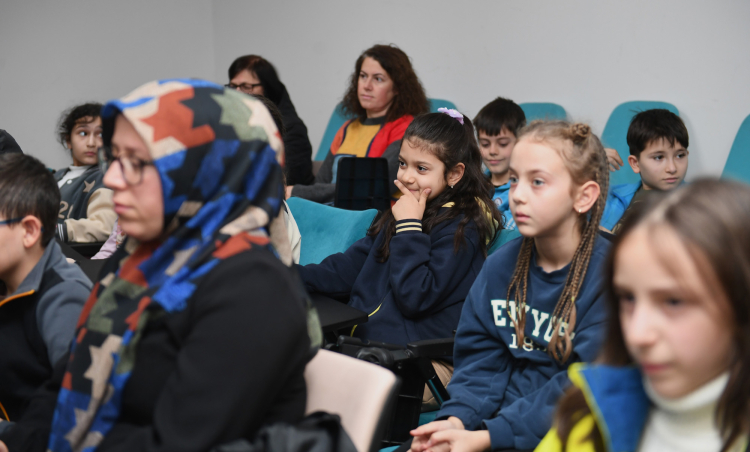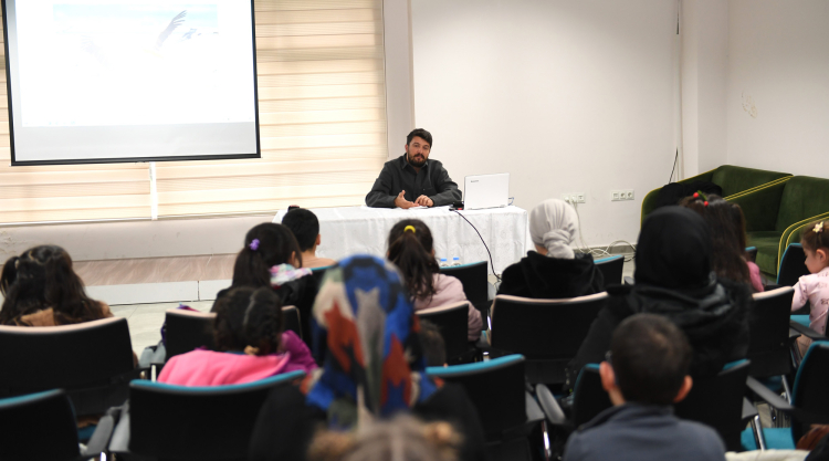 Söyleşi esnasında etkinliğe katılan çocuklar, doğa ve hayvanlarla ilgili merak ettiklerini doğa fotoğrafçısı Alper Tüydeş’e sordu.