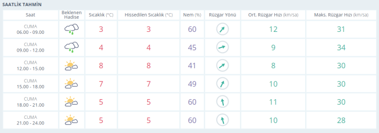İŞTE BURSA İÇİN SAATLİK HAVA DURUMU TAHMİNİ