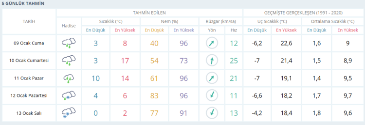 BURSA'DA 5 GÜNLÜK HAVA DURUMU TAHMİNİ