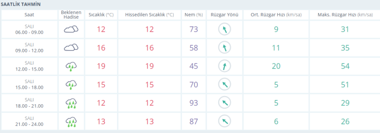 BURSA İÇİN SAATLİK HAVA DURUMU TAHMİNİ