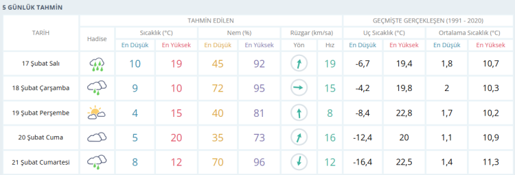 BURSA İÇİN 5 GÜNLÜK HAVA DURUMU TAHMİNİ