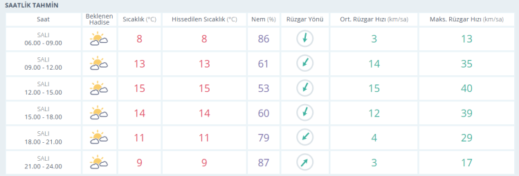 BURSA İÇİN SAATLİK HAVA DURUMU TAHMİNİ