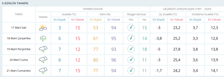 BURSA İÇİN 5 GÜNLÜK HAVA DURUMU TAHMİNİ