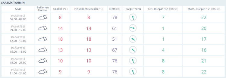 İŞTE BURSA İÇİN SAATLİK HAVA DURUMU TAHMİNİ