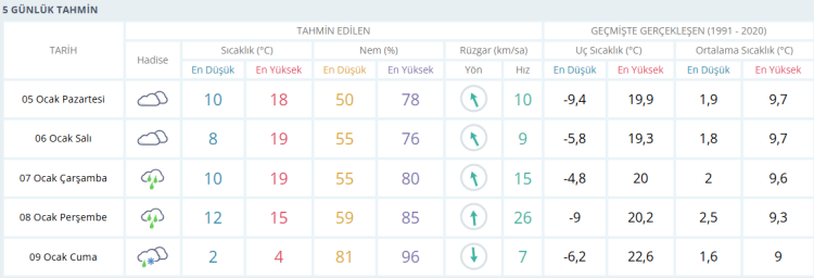 BURSA'DA 5 GÜNLÜK HAVA DURUMU TAHMİNİ