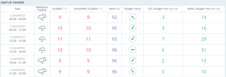 BURSA İÇİN SAATLİK HAVA DURUMU TAHMİNİ
