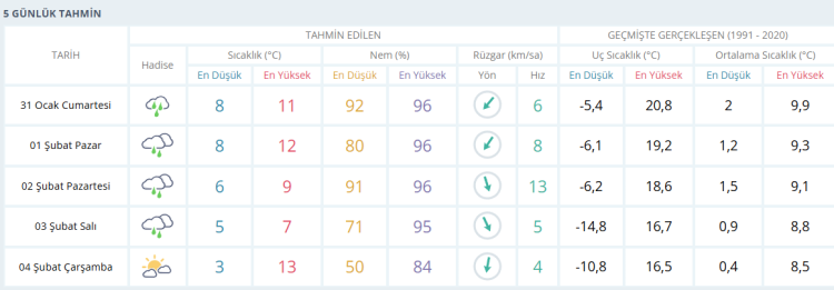 BURSA İÇİN 5 GÜNLÜK HAVA DURUMU TAHMİNİ (