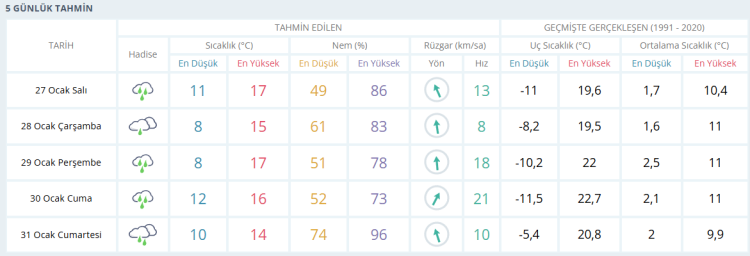 5 GÜNLÜK HAVA DURUMU TAHMİNİ