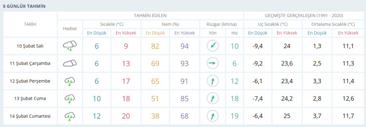 5 GÜNLÜK HAVA DURUMU TAHMİNİ