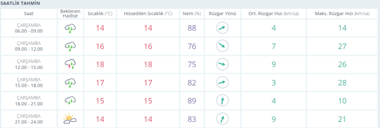 PERŞEMBE: Sağanak yağışlı, 17 derece