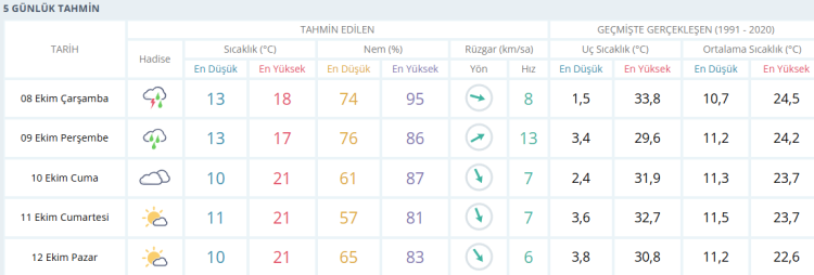 İŞTE BURSA İÇİN 5 GÜNLÜK HAVA DURUMU TAHMİNİ (8 EKİM 2025)