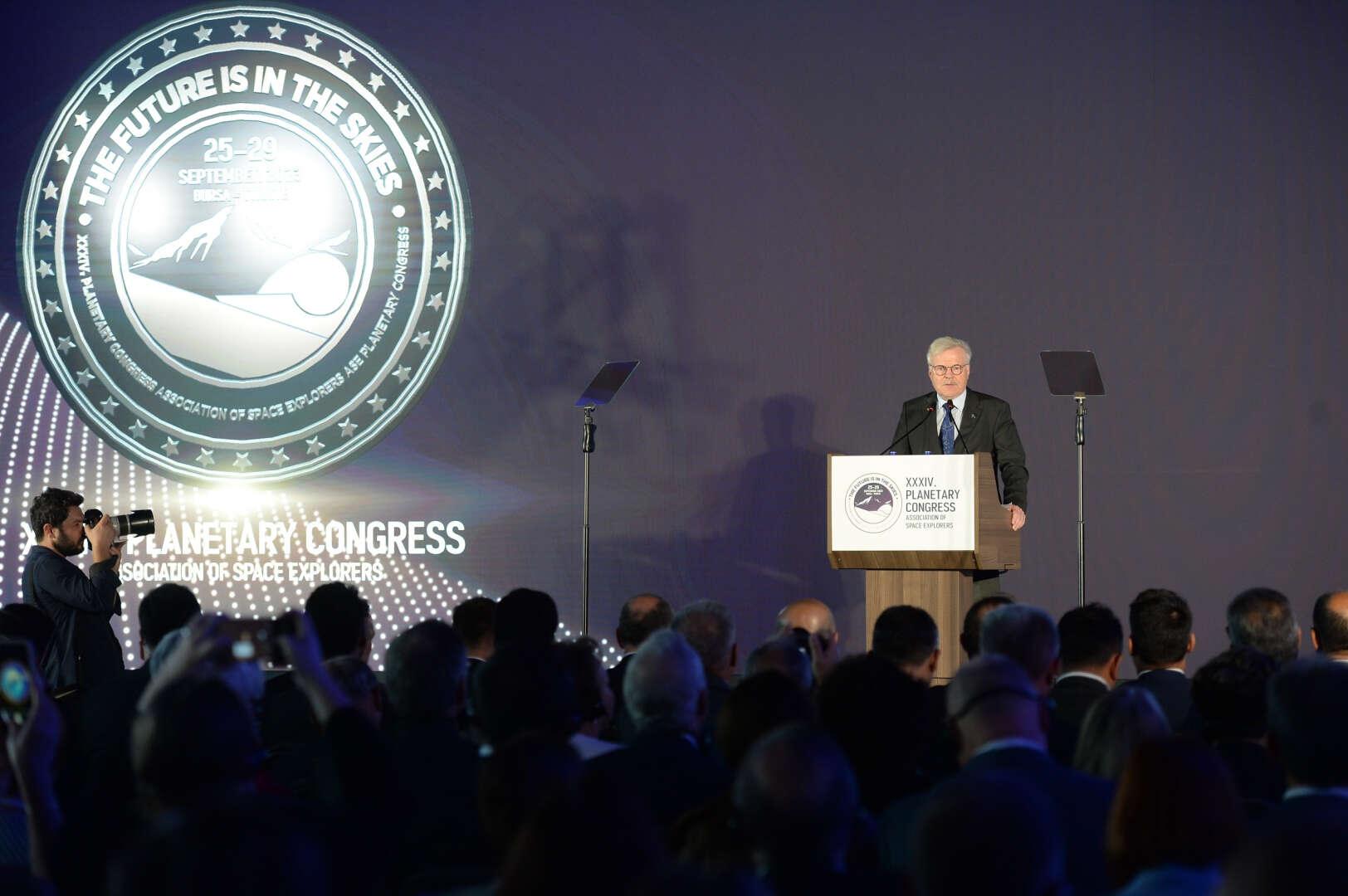 ASE Başkanı Reinhold Ewald yaptığı konuşmasında BTSO’ya ve GUHEM’e organizasyondan dolayı teşekkür etti. Tarihi bir günde tarihi bir mekanda güzel bir kongre gerçekleştirildiğini ifade eden Ewald, “Bursa’da olmaktan dolayı büyük bir mutluluk duyuyoruz. Organizasyonumuzda uzay biliminde önemli astronotlarımızı ağırlıyoruz. Uzay aleminde artık Türkiye’nin de olduğunu görmek memnuniyet verici. Türkiye’nin astronot adayları da eğitimlerine devam ediyor. Türkiye gibi seçkin bir ülkeyi ve topluluğa aramıza hoş geldiniz diliyorum. Bu yılın teması da ‘İstikbal Göklerdedir’. Artık gökyüzü geleceği gösteriyor. Geleceğimiz gökyüzünde. Gelin birlikte geleceği inşa etmeye başlayalım.” dedi.