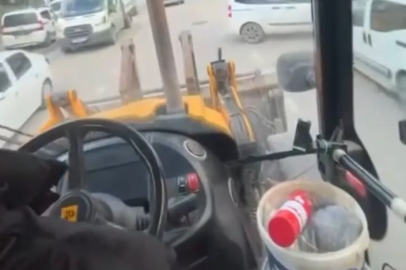 Bursa'da iddiaya göre ehliyeti olmayan bir genç, sokak aralarında iş makinesi sürdü.