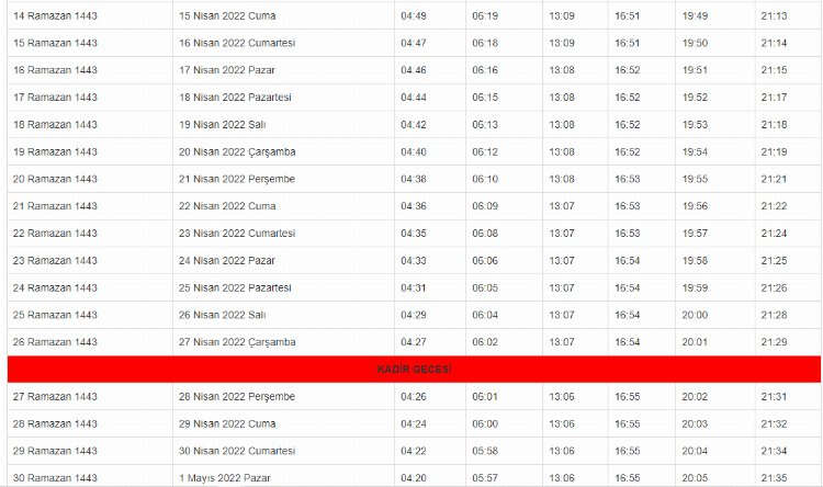 Diyanet İşleri Başkanlığı tarafından paylaşılan 2022 Ramazan İmsakiyesi ile sahur ve iftar vakitleri netlik kazandı.