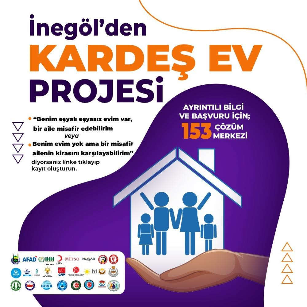 Kahramanmaraş’ta yaşanan deprem felaketi sonrası ilk andan itibaren yardımlaşma ve dayanışma örneği göstererek bölgeye yardım eli uzatan Bursa'nın İnegöl, ilçesi kampanya başlattı. İnegöl Belediyesi uhdesinde İnegöl Resmi ve Sivil Toplum Platformu adıyla AFAD öncülüğünde “Kardeş Ev” kampanyası başlatıldı.