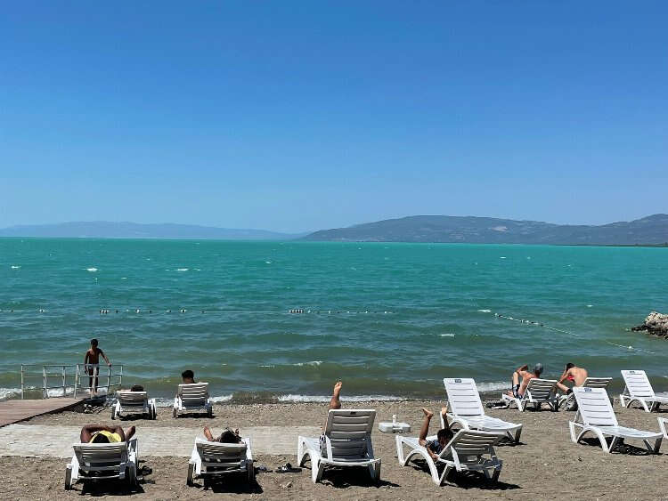 İznik’e gelen yerli ve yabancı turistler, turkuaz rengi ve temizliğiyle Türkiye’nin Maldivleri olarak bilinen Salda Gölü’nü aratmayan manzarayı izlemenin keyfini sürdü.