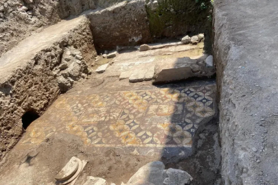 Su altındaki tarihi bazilika'nın ardından Bir evin zemininden çıkan dev mozaik üzerindeki motifler 2500 yıllık tarihi gözler önüne serdi.