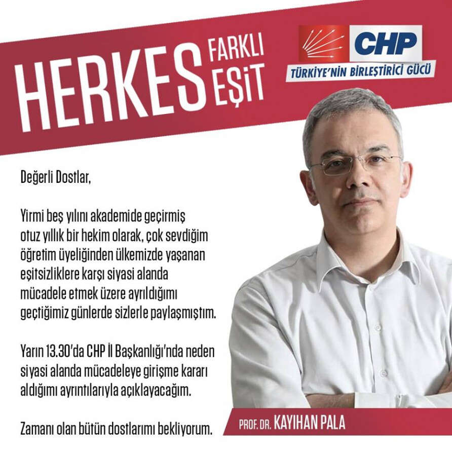 CHP Bursa Milletvekili Aday Adayı Profesör Doktor Kayıhan Pala yarın ( 3 Mayıs 2018) yapacağı basın toplantısı ile aday adaylığı ile ilgili açıklamada bulunacak