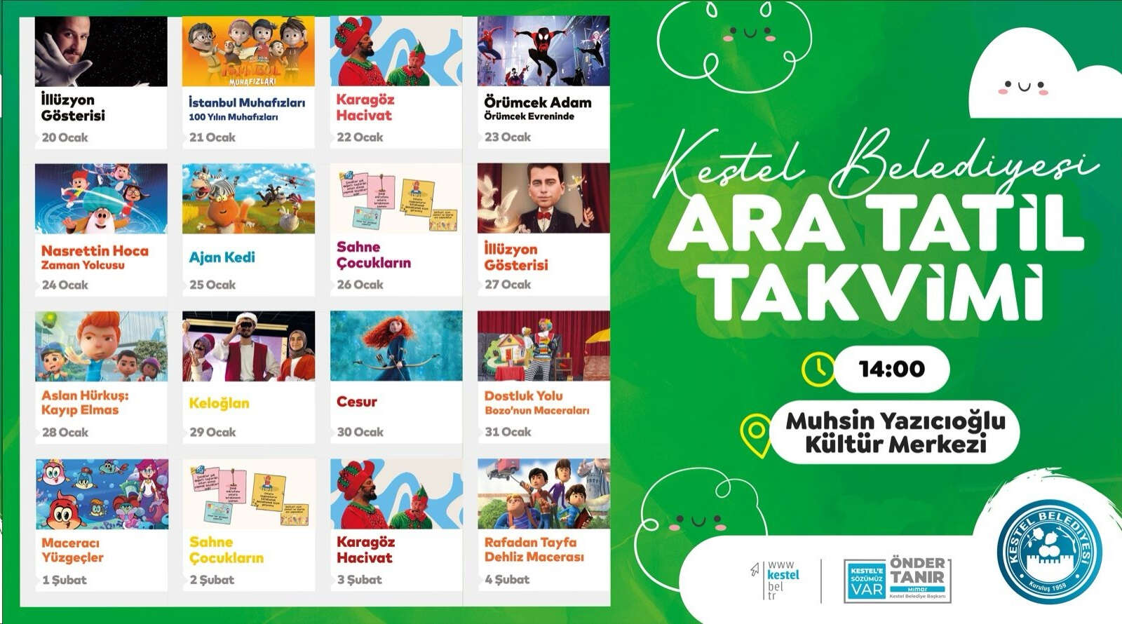 BURSA-Kestel Belediyesi yarı yıl tatiline çıkacak olan çocuklara yönelik organize ettiği ara tatil etkinlik takvimini duyurdu.