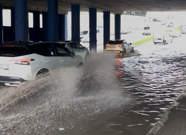 Bursa'da bir süredir devam eden lodos, yerini sağanak yağışa bıraktı. Yoğun yağışın ardından alt geçitte biriken sular, zaman zaman araç trafiğinin yoğun olduğu kavşakta ulaşımı olumsuz etkiledi. Su seviyesinin yükselmesiyle birlikte sular kaldırımlara kadar taştı.