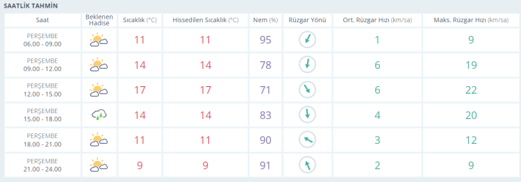BURSA İÇİN SAATLİK HAVA DURUMU TAHMİNİ (13 KASIM 2025)