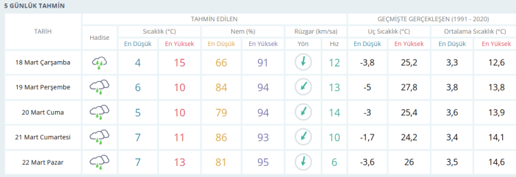 BURSA İÇİN 5 GÜNLÜK HAVA DURUMU TAHMİNİ