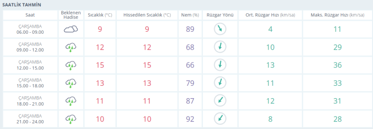 BURSA İÇİN SAATLİK HAVA DURUMU TAHMİNİ