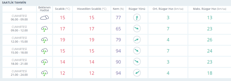 İŞTE BURSA İÇİN SAATLİK HAVA DURUMU TAHMİNİ (11 EKİM 2025)