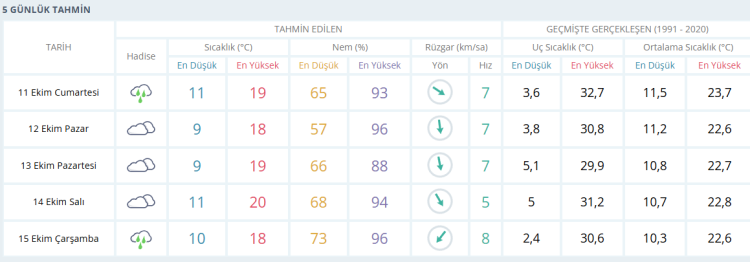 İŞTE BURSA İÇİN 5 GÜNLÜK HAVA DURUMU TAHMİNİ (11 EKİM 2025)