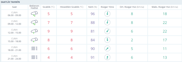 İŞTE BURSA İÇİN SAATLİK HAVA DURUMU TAHMİNİ