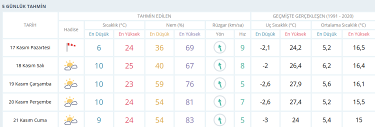 BURSA İÇİN 5 GÜNLÜK HAVA DURUMU TAHMİNİ (17 KASIM 2025)