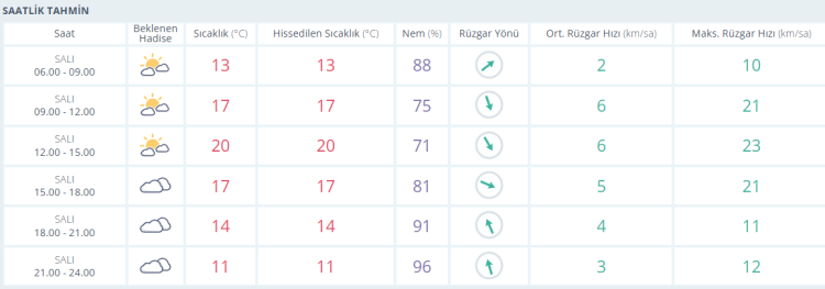 İŞTE BURSA İÇİN SAATLİK HAVA DURUMU TAHMİNİ (14 EKİM 2025)