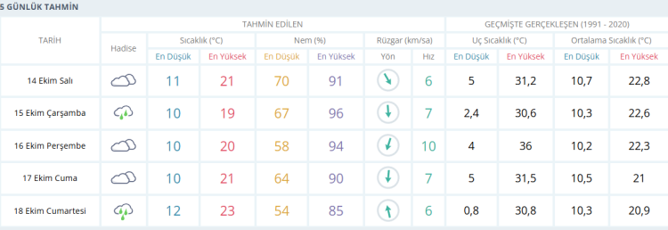 İŞTE BURSA İÇİN 5 GÜNLÜK HAVA DURUMU TAHMİNİ (14 EKİM 2025)