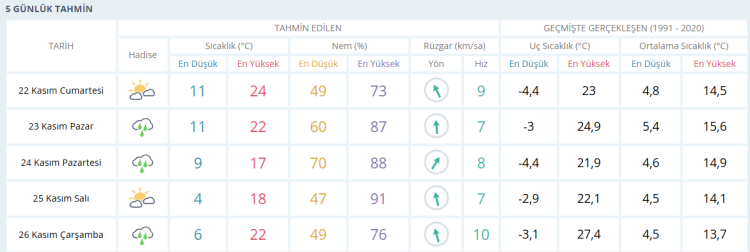 İŞTE BURSA İÇİN 5 GÜNLÜK HAVA DURUMU TAHMİNİ (22 KASIM 2025)