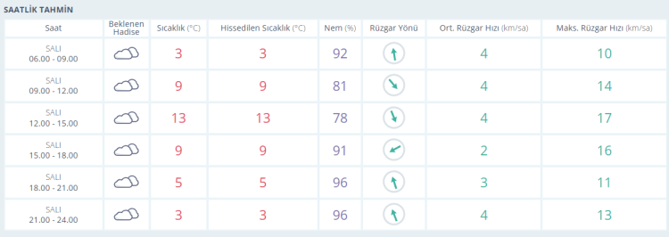 PERŞEMBE: Parçalı bulutlu, sıcaklık 13 derece