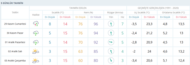 BURSA İÇİN 5 GÜNLÜK HAVA DURUMU TAHMİNİ (29 KASIM 2025)