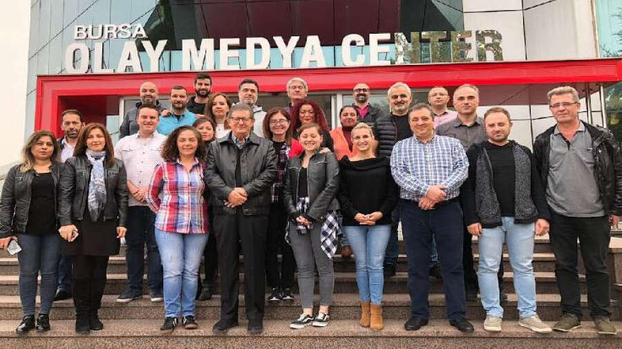 Olay TV'nin son çalışanları, kanalın kapatılma kararı üzerine hatıra fotoğrafı çektirmişti.