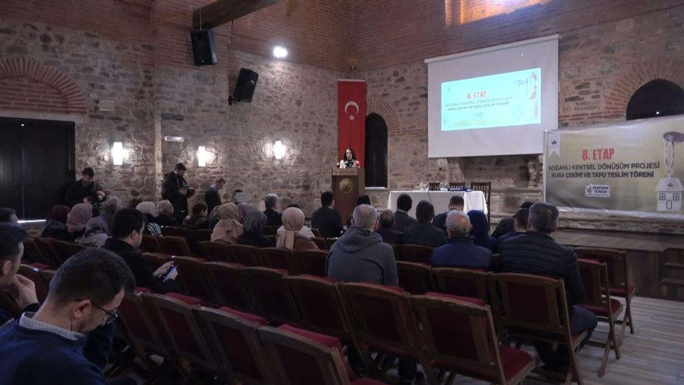 Bursa'da Osmangazi Belediyesi, Soğanlı 8. Etap Kentsel Dönüşüm Projesi çerçevesinde deprem riskli alanda yapılan konutların tapularını hak sahiplerine kura çekiminin ardından törenle teslim etti.