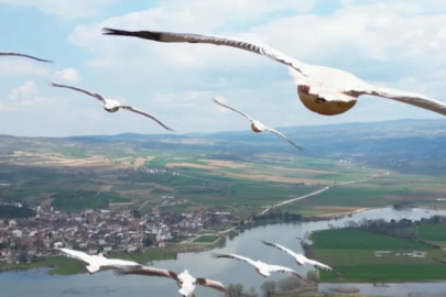 İnegöl Belediyesi Basın Halkla ilişkiler ekipleri, pelikan sürüsünü drone'la görüntüledi.