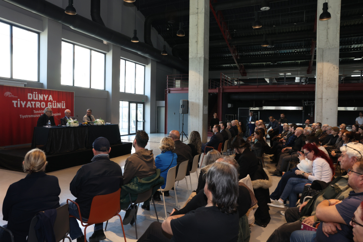 Nilüfer Belediyesi’nin Dünya Tiyatro Günü kapsamında düzenlediği “Tanıklıklar: Tiyatromuzun Dünü ve Bugünü” söyleşisi, Pancar Deposu’nda gerçekleştirildi. Nilüfer Kent Tiyatrosu yöneticisi Kazım Güçlü’nün moderatörlüğünü yaptığı söyleşide usta tiyatro sanatçısı ve yönetmen Rutkay Aziz ile Nilüfer Belediye Başkanı Şadi Özdemir yer aldı. Söyleşinin başında Kazım Güçlü, Süreyya Karacabey’in alternatif Dünya Tiyatro Günü Bildirisi’ni okudu.