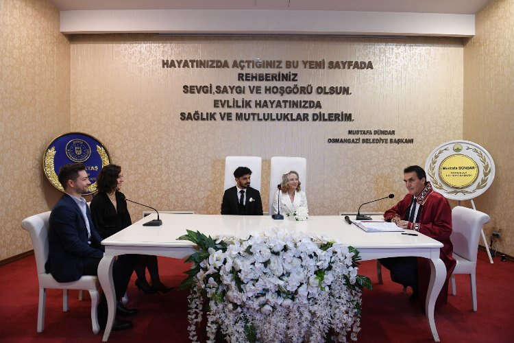 Evlilik tarihlerini 14 Şubat Sevgililer Günü’ne denk getirmek isteyen çiftler, Osmangazi Belediyesi Merinos Nikah Salonu’na akın etti. Günde ortalama 7-8 nikahın kıyıldığı Osmangazi’de 14 Şubat’ta bu sayı 17’ye yükseldi. Dünya evine girmek için bu özel günü