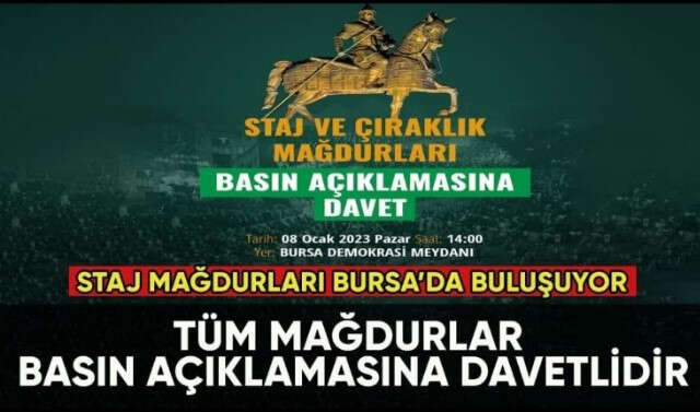 Staj ve çıraklık sigortası mağdurları, mağduriyetlerini gündeme getirmek için Bursa'da basın açıklaması düzenleyecek.