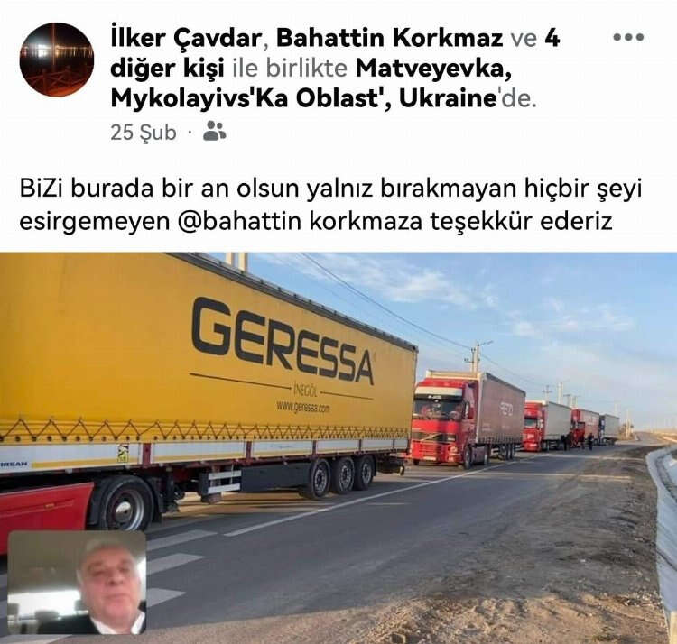 Rusya’nın Ukrayna’yı işgal etmesiyle birlikte İnegöllü 6 tır şoförü savaşın ortasında mahsur kaldılar. Mahsur kalan 6 tır şoförü İnegöl Şoförler Odası Başkanı Bahattin Korkmaz'a ulaşarak yardım istedi.