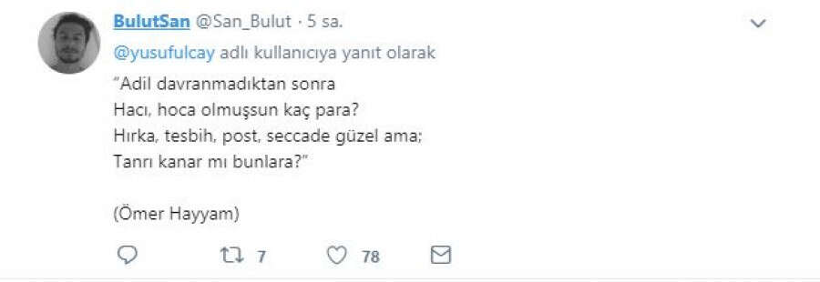 Bir kullanıcı ise Ulcay'a Ömer Hayyam'ın bir başka dörtlüğüyle yanıt verdi: