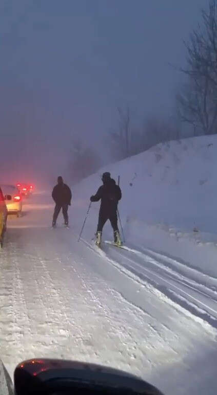Ayrıca bazı vatandaşlar da kayak takımlarıyla şehir merkezine inmeye çalıştı.