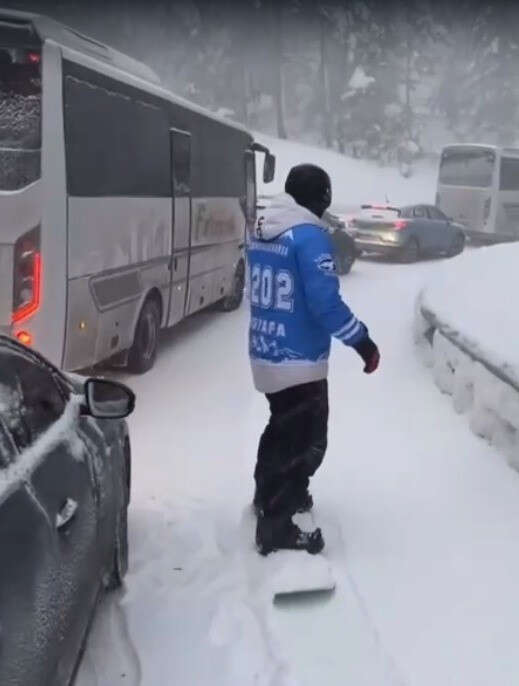 Bursa'da Uludağ'da etkili olan kar yağışı nedeniyle kapanan yolda 25 kilometrelik trafik oluştu. Öte yandan kapanan yolda kayak takımları ile kayarak şehir merkezine inmeye çalışan vatandaşlar ise kameraya yansıdı.