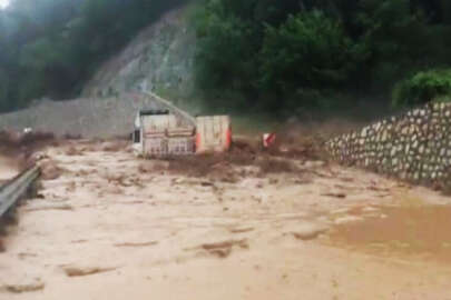 Sel suları altında kalan yollar dereye dönerken sürücüler zor anlar yaşadı.