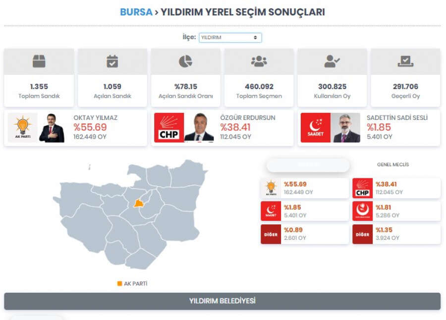 İşte Yıldırım Belediye Başkanlığı seçim sonuçları;
