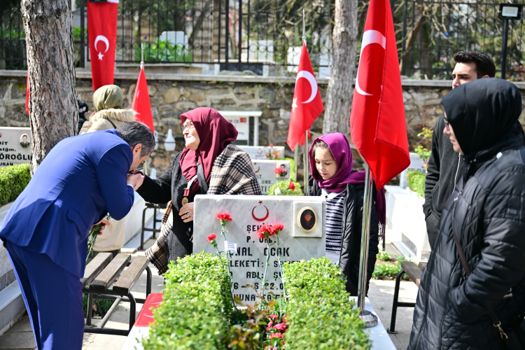 Yıldırım Belediye Başkanı Oktay Yılmaz, 18 Mart Çanakkale Zaferi ve Şehitleri Anma Günü nedeniyle Pınarbaşı ve Hamitler şehitliklerini ziyaret etti. Şehit kabirlerine karanfil bırakarak, dua eden Başkan Yılmaz, şehit aileleriyle de bir araya geldi.