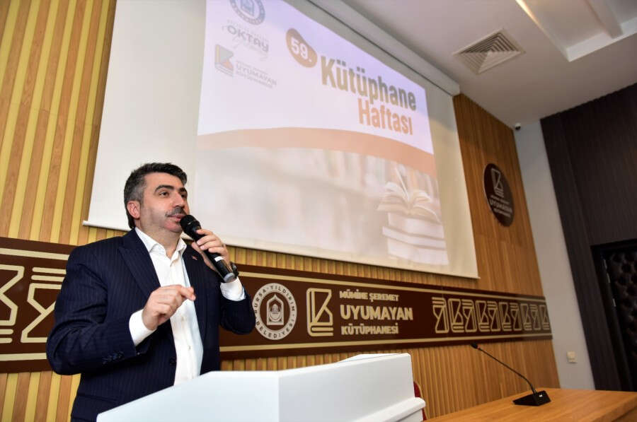 Kitabın ve kütüphanenin medeniyetimizde çok önemli bir yeri olduğunun altını çizen Başkan Oktay Yılmaz, "Öyle ki; mukaddes kitabımız Kuran-ı Kerim'de bize bildirilen ilk emir; 'İkra' yani 'oku' dur. İlk emri oku olan bir dinin temsilcileri olarak; okumaya, kitaba, ilime, düşünmeye ve dolayısıyla da kütüphanelere önem vermek zorundayız. Şöyle geriye doğru baktığımızda, kütüphanelerimiz ne kadar zengin ne kadar yaygın ne kadar hareketliyse, medeniyetimiz o derece üretken, devletimiz o derece güçlü, milletimiz o derece müreffeh olmuştur. Bizim medeniyetimiz, kitapla, defterle, kalemle, mürekkeple, okumakla, anlamakla, sormakla, anlatmakla yoğrulmuş, ilimle, irfanla, hikmet ve tefekkürle kıvamını bulmuştur. Duvarları kitaplarla dolu bir kütüphaneyi en kıymetli hazinelerden daha üstün tutan ecdadımız, her kütüphaneyi cennetten bir köşke benzetmiştir. Büyük mütefekkir Cemil Meriç; "Okuma, içimizdeki meçhul âlemin kapılarını açan bir anahtardır. Kitap zekâyı kibarlaştırır. Zekânın tavırlarını efendileştirmek için okumak zorundayız" dedi.